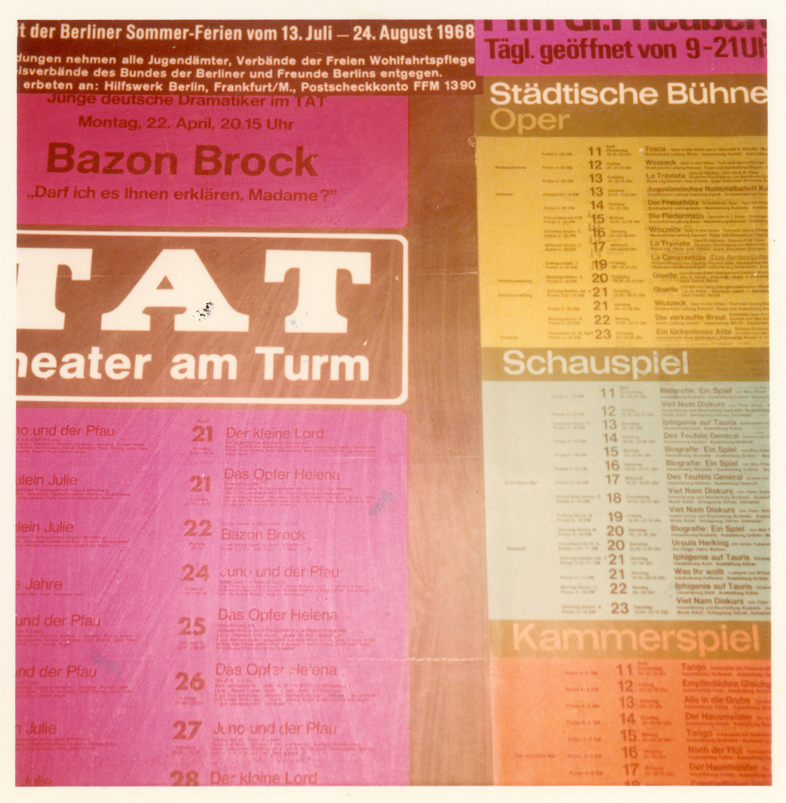 Auszug aus der Autobiographie ‚Bazon Brock, was machen Sie jetzt so?‘, Melzer-Verlag, Darmstadt 1968. Die Aktion Dörnberg 1967 rangiert in bisherigen Publikationen Brocks unter der Bezeichnung ‚Das Schreitheater‘, bei der auch andere Formen der Ich-Veröffentlichung geübt wurden.