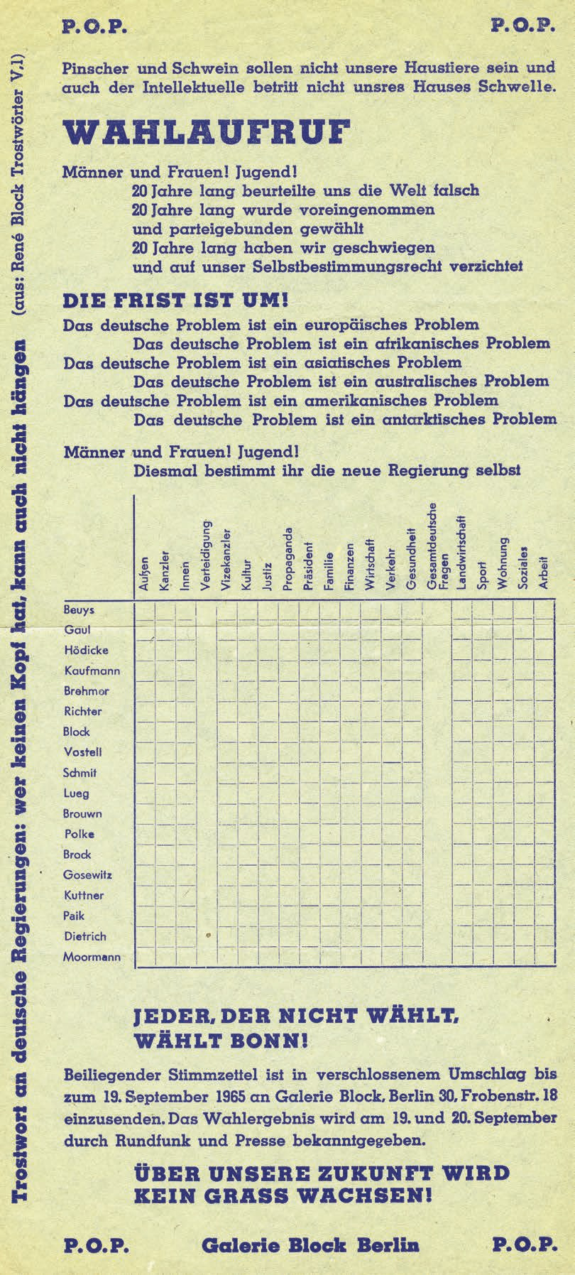 Theoretisches Objekt · Termin: 19.09.1965 · Veranstaltungsort: Berlin, Deutschland · Veranstalter: Galerie Block