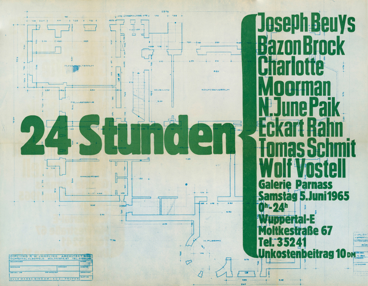 Paik sei auf dem Klavier eingeschlafen, Charlotte entführt worden. Ich nehme eine halbe Effortil. Jens geht Zigaretten holen. Vostell und Beuys schlafen (wie versteht sich das mit der gestellten Aufgabe 24 Stunden bei Vostell, der nicht in seinem Raum ist?).