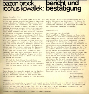 Bazon Brock, Beweger: Er erfand im 16. Jahrhundert die Möglichkeit auf zwei Beinen rückwärts - und ein Jahrhundert später auf zwei Beinen seitwärts zu gehen. Seither versucht er, mit wechselndem Erfolg, seine Forschungsergebnisse auch in andere Richtungen zu übertragen. Für Herrn Kowallek verpflichtet er sich hiermit, eine weitere Lösung des Problems für Einbeinige zu finden und der Menschheit dienbar zu machen.