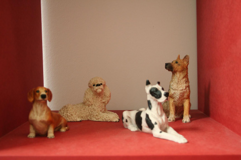 Among the references to experimental historiography that our vitrine constellation has to offer, we’d like to highlight one other example which the collection of dogs shown in another compartment warns of as the first results of domestication. Bismarck is chiefly identified by his assistance animal, much in the way we recognize Zeus by his eagle, which grasps the lightning bolts of the angry god in its talons. In the early 1980s, Ulrich Raulff and Ulrich Giersch, editors of the Wilde Akademie Berlin and the magazine for transportation science, Tumult, developed together with several other experimenters a series of cynological experiments. Based on the familiar attributions of the properties of their dogs to politicians and thinkers (Hitler and his German shepherd Blondie, Mephistopheles / Schopenhauer and the poodle, Emperor Wilhelm II and the dachshund, Thomas Mann and mixed race dogs, Queen Elizabeth and corgies, the blind and golden retrievers, mountain guides and St. Bernhards…), corresponding animal natures were to be bred as assistance animals for Khrushchev, Khomeini, Heidegger, Celan, Chancellor Schmidt, Carl Schmitt, Goebbels, and others of a similar caliber. We have not progressed much beyond the historic formula of the proper functioning of the domini canes, in other words, the Dominicans. Historically, master and dog, dog and wellbeing, tending and nurturing have already been so wonderfully cast in stone that even the fantasy of a breeder gone rogue doesn’t stand a chance. And certainly not with the Iron Chancellor and his formidable butcher’s dog.