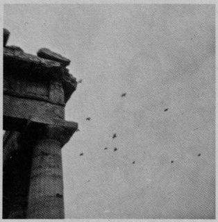 1 Ich klatschte in die Hände. Der Dohlenschwarm strich ab. Das waren meine Konstellationen des Vogelflugs. Gesucht wird ein Kundiger, der mir daraus die Zukunft liest., Bild: Paestum 1972 © Melusine Huss.