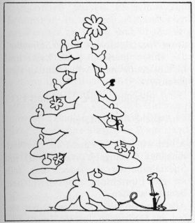 Es ist schwer zu verstehen, wenn wir im Zeitalter des Düsenverkehrs immer noch die einfache, naturgewachsene Tanne (T. ordinaria) benutzen. Den Fortschritt der Wissenschaft einbeziehend, hat die Bethlehemstil GmbH auf den Weihnachtsinseln durch friedliche Atombestrahlung Mutationen der ordinären Tanne hervorrufen lassen. Dadurch wurde erreicht, daß die Tannen von jetzt ab nadelfrei und gleich mit ihrem weihnachtlichen Schmuck und den Kerzen aufwachsen. Bei dieser für alle Stände notwendigen Anschaffung muß nur noch das Anzünden der Kerzen weiterhin von Menschenhand besorgt werden.