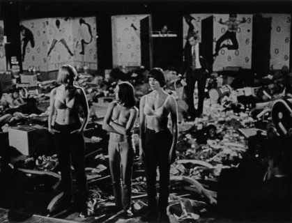1 Konkrete Philosophie im Büstenhalter: Der "No-bra", Bild: Action-Teaching "Wie werden wir morgen leben?", Hannover 1967 © G. P. Reichelt.