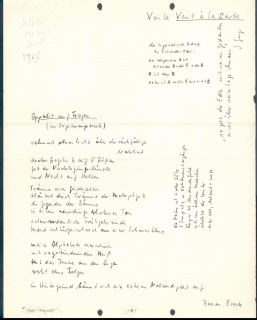 Voilà, Vente à la carte, Bild: Handschriftliches Fragment, 1957.