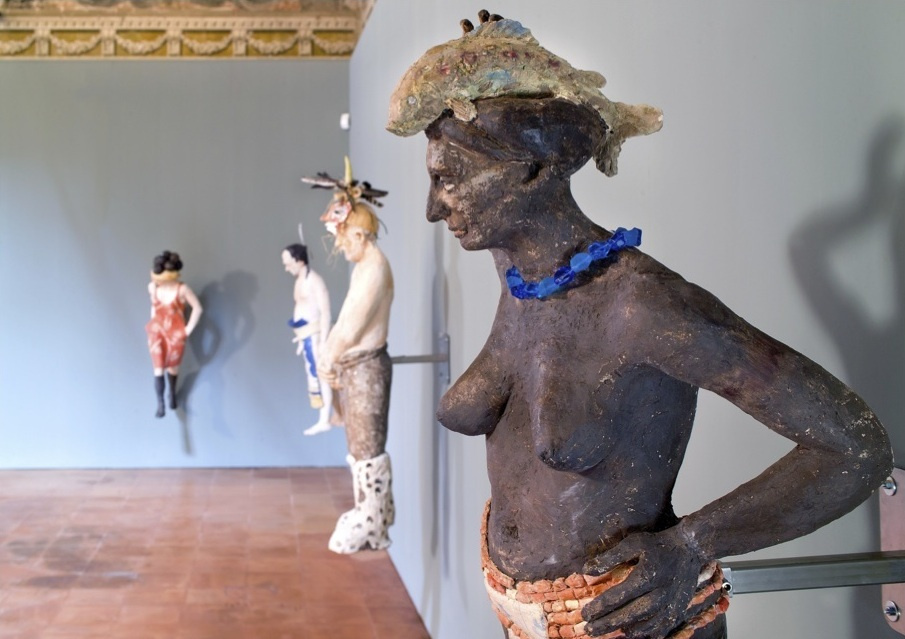 Silke Rehberg, "Schmetterlingssammlung", Bild: 2001-2005, gebrannter Ton, engobiert, 120 x 140, 35 x 70, 55 x 78 cm.