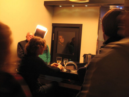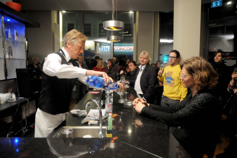 Jackson Pollock Bar. Gottfried Benn als Barkeeper für Audens „Das Zeitalter der Angst“, Berlin 1948, Bild: Eröffnung der Denkerei am 3.12.2011 in Berlin © Maurus Gmür..
