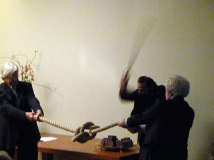 Experimentelle Geschichtsschreibung: Konnte Alexander der Große den gordischen Knoten mit einem Schwert durchschneiden?, Bild: Bazon Brock, Cem Sultuan Ungan, Jochen Hörisch | Eröffnung der Denkerei am 3.12.2011 in Berlin © Joachim Baur.