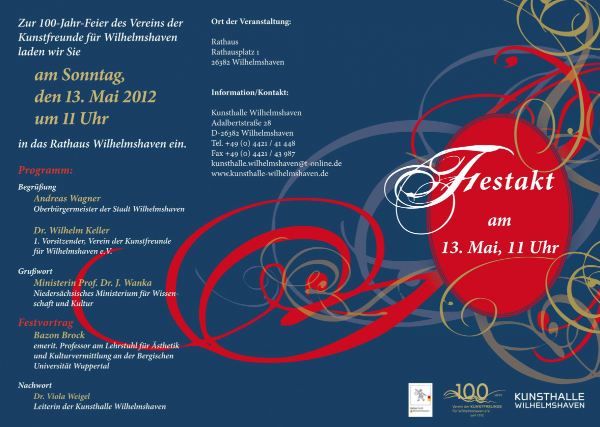 Dass hier die Marine einen Kunstverein mitbegründete, ist sozusagen die schönste Eröffnung des Programms „Fortschritt durch Kunst und Seefahrt“. Ich hoffe, Ihnen die Bedeutung dieses Gedenkens hinreichend dargestellt zu haben und bedanke mich für Ihre Bereitschaft zuzuhören.