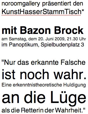 KunstHasserStammtisch mit Bazon Brock; Bild: noroomgallery, Hamburg 20.06.2009
