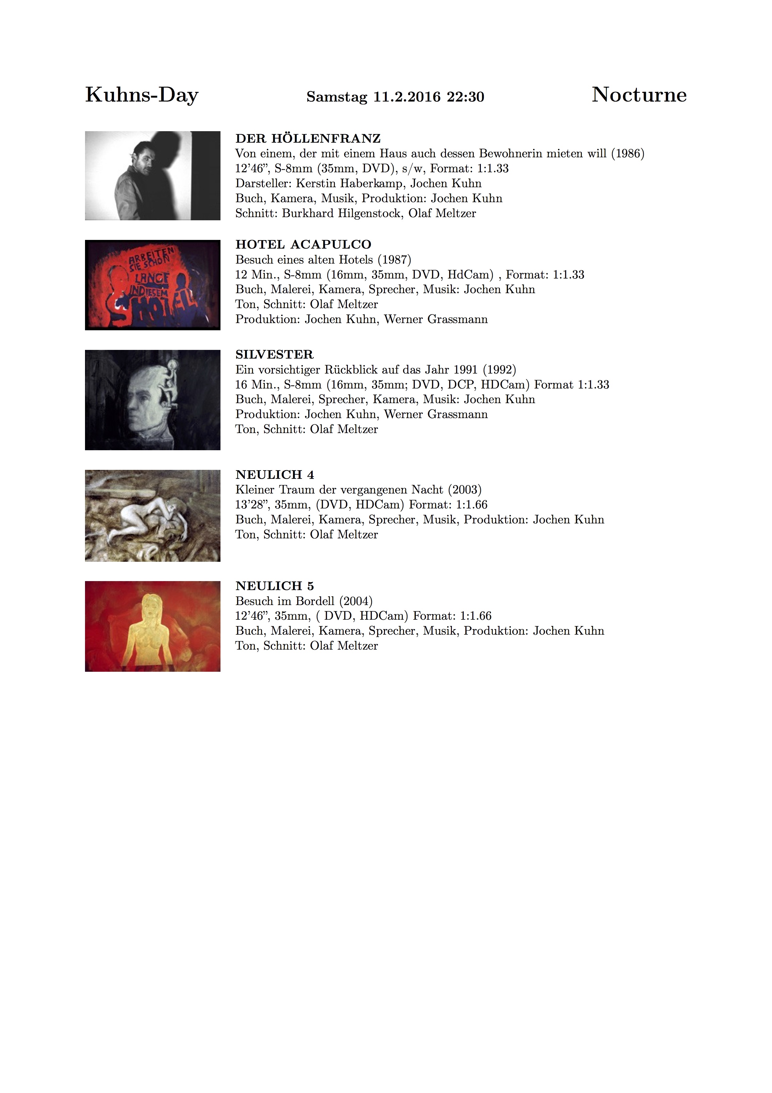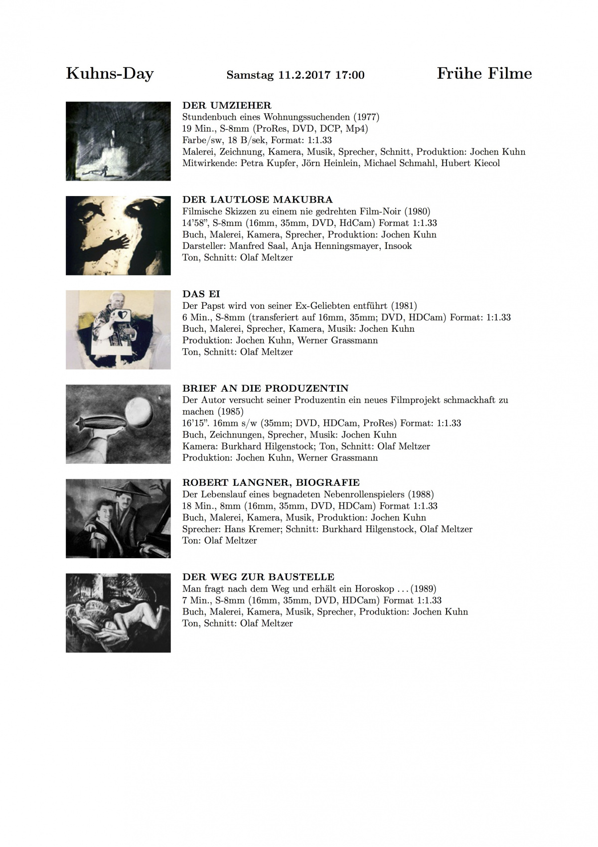 In der Denkerei wird zum ersten Mal ein Großteil des gesamten Werks von Jochen Kuhn präsentiert. 19 Filme in 7 Stunden.