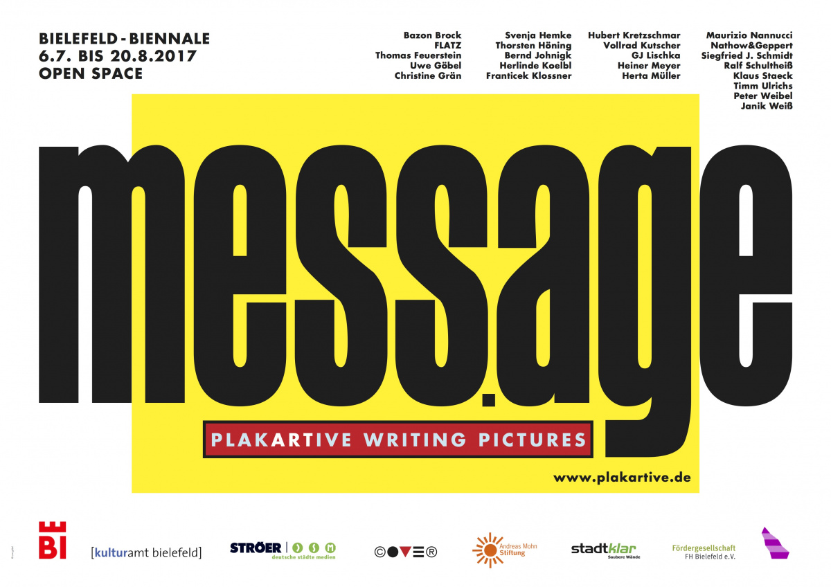 Mit den Ausstellungen 2012 und 2015 hat sich die PLAKARTIVE – WRITING PICTURES (Schreibilder) als eine neue Kunstveranstaltung in Bielefeld-Mitte profiliert und findet in diesem Sommer zum dritten Mal statt.