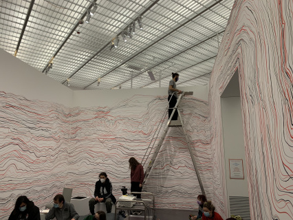 3. Reenactment der „Großen Hamburger Linie“ von Bazon Brock und Friedensreich Hundertwasser an der Hamburger Kunsthochschule 1959 – nach Reenactments in Bremen (2012) und Wien (2020). In Metz waren 16 Studierende der 'École Supérieure d'Art de Lorraine de Metz beteiligt.