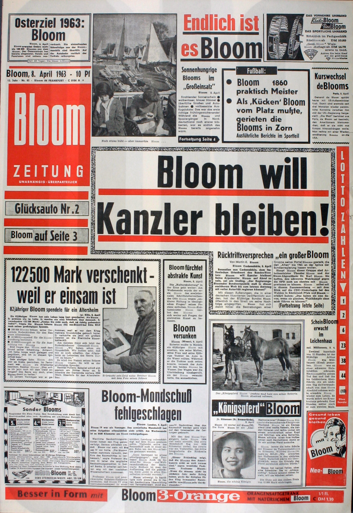 Bloom heißt auf deutsch Jedermann. Da gibt es den Ackermann von Böhmen, den Salzburger Jedermann, den Dubliner Jedermann, den Heideggerschen (Jeder-)man und den Meadschen Jedermann als "the generalized other". 1963 hat Bazon Brock zur ersten Etablierung des Bloomsdays in Deutschland die Bildzeitung in eine Bloomzeitung umgewandelt. Das war die Ausgabe vom 16. Juni, in der alle Eigennamen durch Bloom ersetzt wurden.